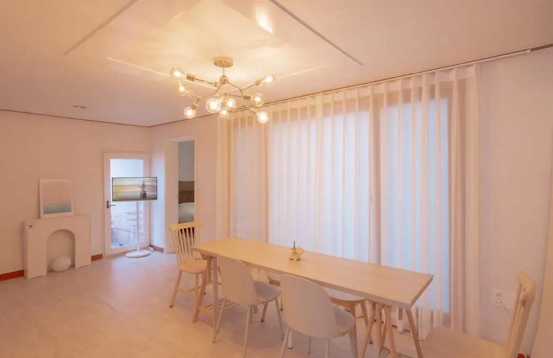 The spacious 77 m^2 Thread Ground - 3Br Family Apartment In Seoul, 4 Queen Beds, Sleeps 8 lies within 5 km of Gwanghwamun Gate and around 300 metres from Haengdang tube station.